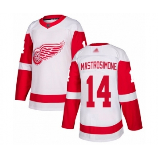 >Youth Detroit Red Wings #14 Robert Mastrosimone Authentic White Away Hockey Jersey