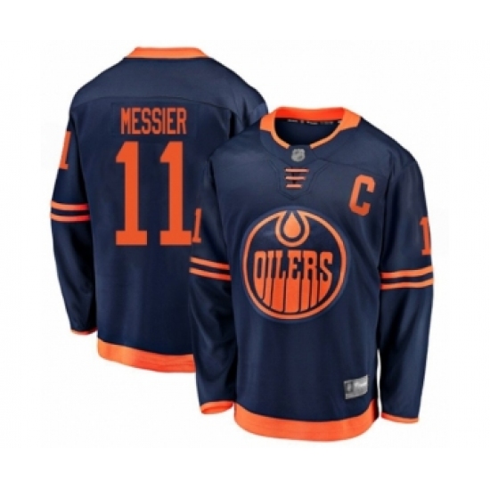 >Youth Edmonton Oilers #11 Mark Messier Authentic Navy Blue Alternate Fanatics Branded Breakaway Hockey Jersey