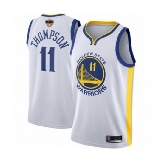 Men's Nike Golden State Warriors #11 Klay Thompson Authentic White Home 2018 NBA Finals Bound NBA Jersey - Association Edition