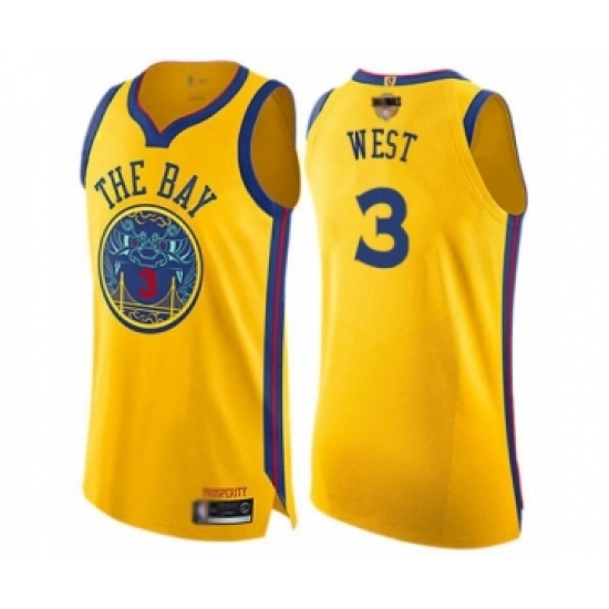 Youth Golden State Warriors #3 David West Swingman Gold 2019 Basketball Finals Bound Basketball Jersey - City Edition