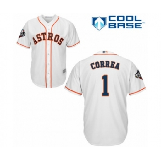 Youth Houston Astros #1 Carlos Correa Authentic White Home Cool Base 2019 World Series Bound Baseball Jersey