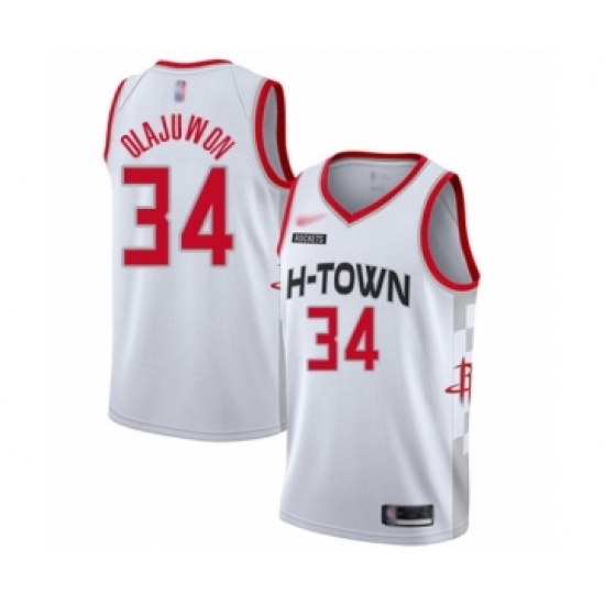 >Youth Houston Rockets #34 Hakeem Olajuwon Swingman White Basketball Jersey - 2019 20 City Edition