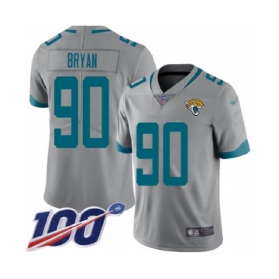 >Youth Jacksonville Jaguars #90 Taven Bryan Silver Inverted Legend Limited 100th Season Football Jersey