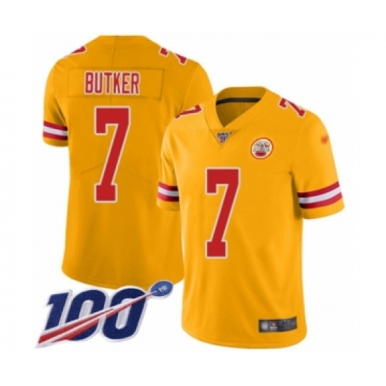 >Youth Kansas City Chiefs #7 Harrison Butker Limited Gold Inverted Legend 100th Season Football Jersey