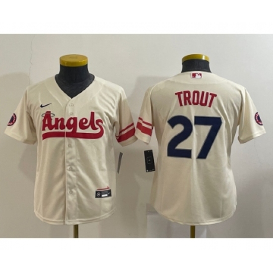 >Youth Los Angeles Angels #27 Mike Trout Cream 2022 City Connect Cool Base Stitched Jersey