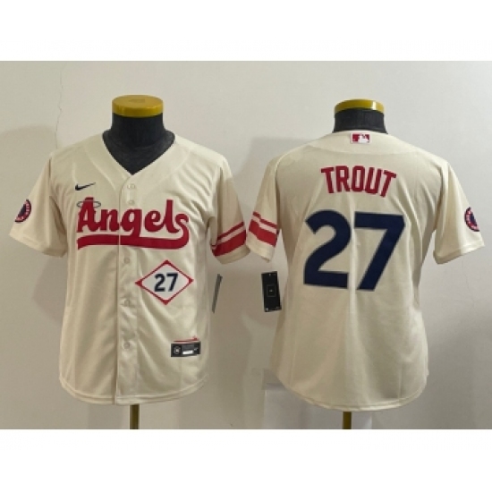 Youth Los Angeles Angels #27 Mike Trout Number Cream 2022 City Connect Cool Base Stitched Jersey