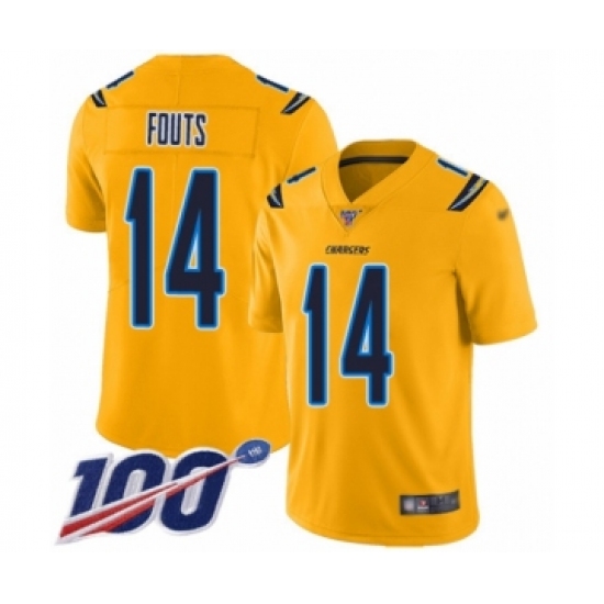 >Youth Los Angeles Chargers #14 Dan Fouts Limited Gold Inverted Legend 100th Season Football Jersey