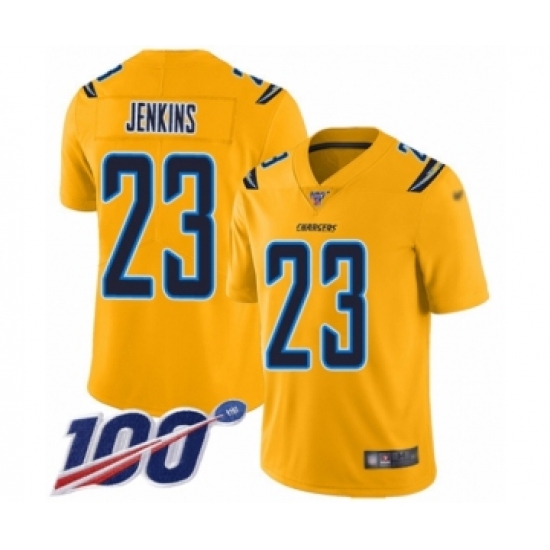>Youth Los Angeles Chargers #23 Rayshawn Jenkins Limited Gold Inverted Legend 100th Season Football Jersey