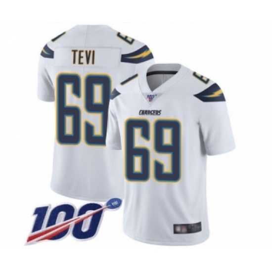 Men's Los Angeles Chargers #69 Sam Tevi White Vapor Untouchable Limited Player 100th Season Football Jersey