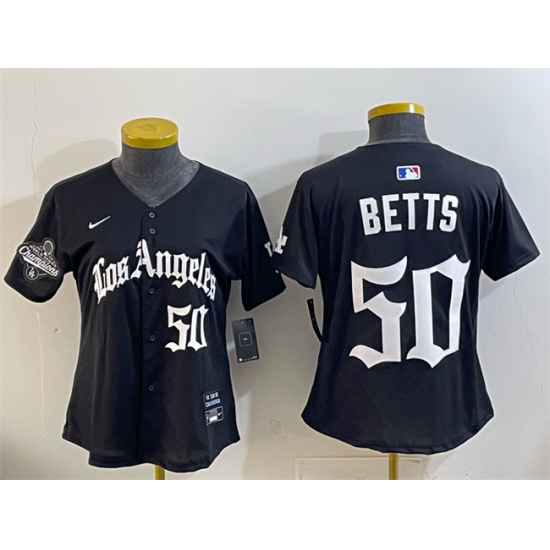 Women's Los Angeles Dodgers #50 Mookie Betts Number Mexico Black Cool Base Stitched Jersey