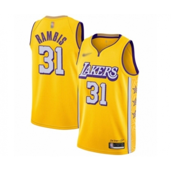 >Youth Los Angeles Lakers #31 Kurt Rambis Swingman Gold Basketball Jersey - 2019 20 City Edition