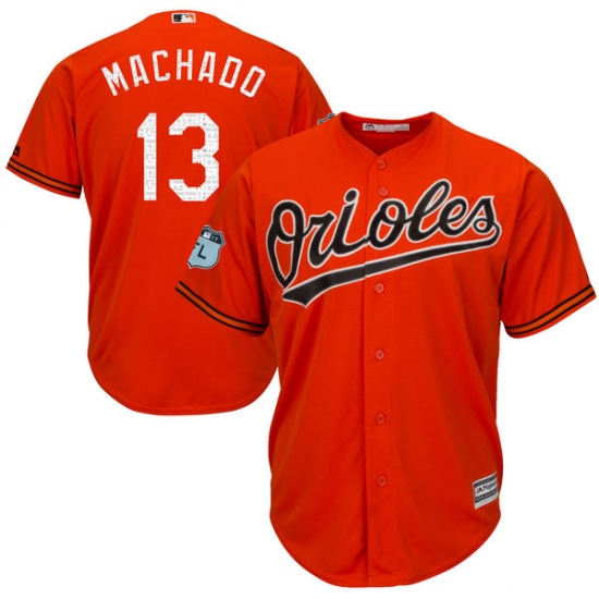 Home>MLB>Baltimore Orioles>Manny Machado>Youth Majestic Baltimore Orioles #13 Manny Machado Authentic Orange 2017 Spring Training Cool Base MLB Jersey