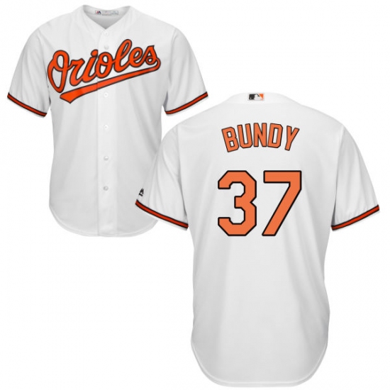 Home>MLB>Baltimore Orioles>Dylan Bundy>Youth Majestic Baltimore Orioles #37 Dylan Bundy Replica White Home Cool Base MLB Jersey
