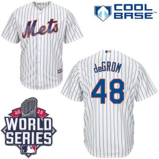 Home>MLB>New York Mets>Jacob deGrom>Youth Majestic New York Mets #48 Jacob DeGrom Replica White Home Cool Base 2015 World Series MLB Jersey