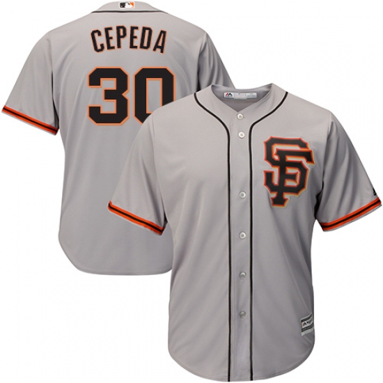 Youth Majestic San Francisco Giants #30 Orlando Cepeda Authentic Grey Road 2 Cool Base MLB Jersey