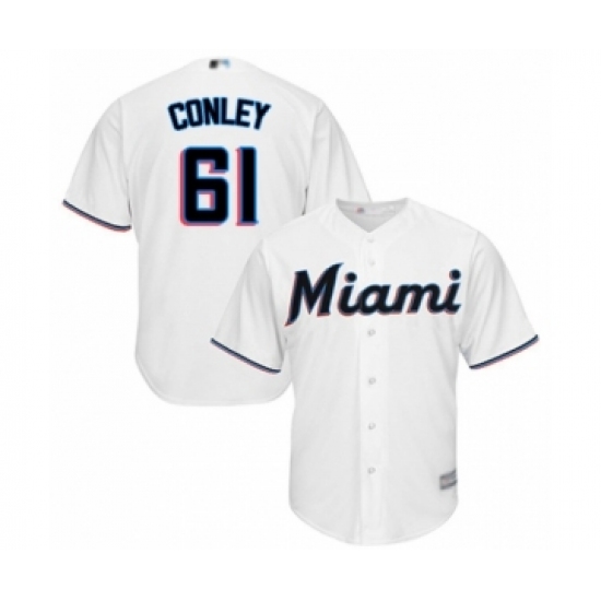 Youth Miami Marlins #61 Adam Conley Authentic White Home Cool Base Baseball Player Jersey