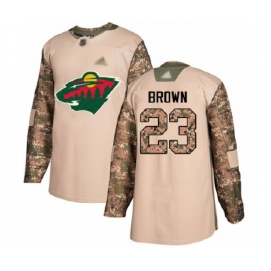 Men's Minnesota Wild #23 J.T. Brown Authentic Camo Veterans Day Practice Hockey Jersey