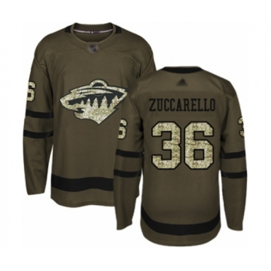 Men's Minnesota Wild #36 Mats Zuccarello Authentic Green Salute to Service Hockey Jersey