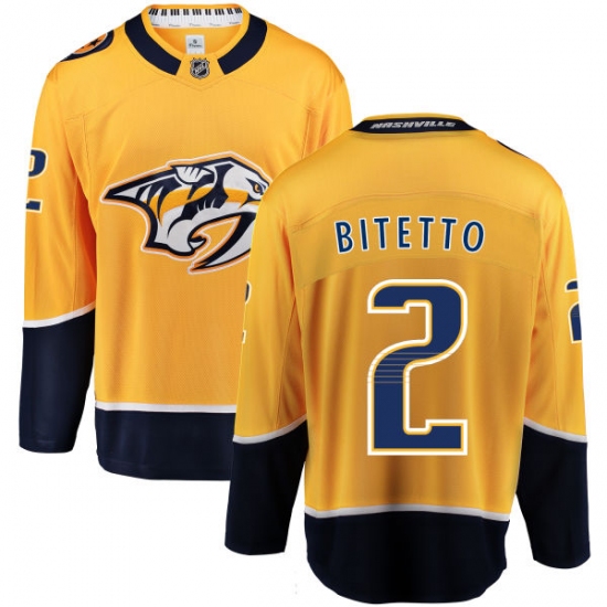 Home>NHL>Nashville Predators>Anthony Bitetto>Youth Nashville Predators #2 Anthony Bitetto Fanatics Branded Gold Home Breakaway NHL Jersey