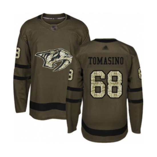 >Youth Nashville Predators #68 Philip Tomasino Authentic Green Salute to Service Hockey Jersey