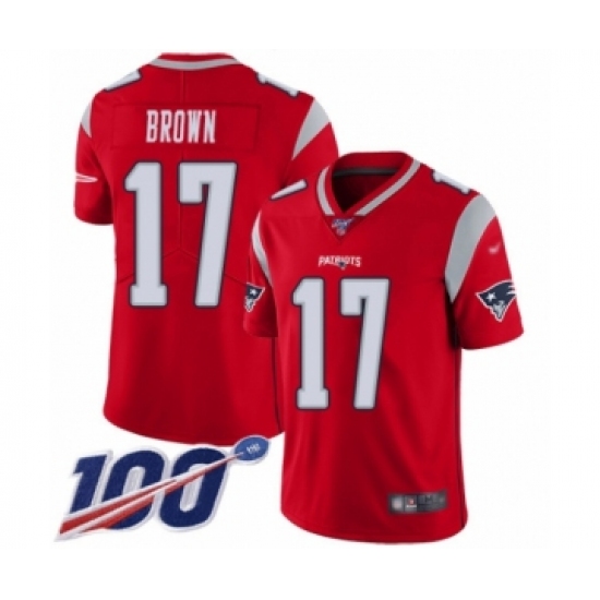 Men's New England Patriots #17 Antonio Brown Limited Red Inverted Legend 100th Season Football Jersey