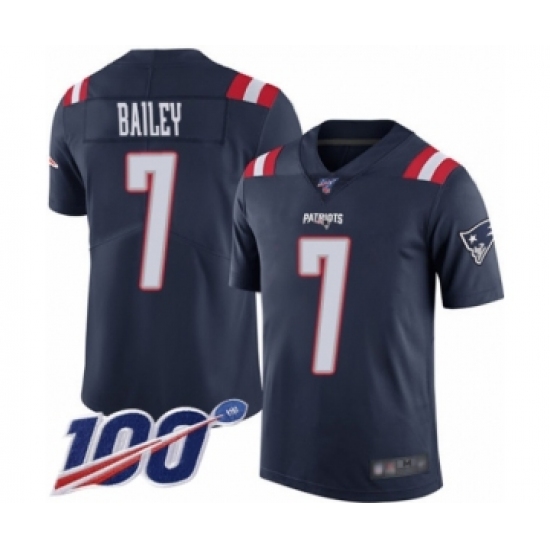 >Youth New England Patriots #7 Jake Bailey Limited Navy Blue Rush Vapor Untouchable 100th Season Football Jersey