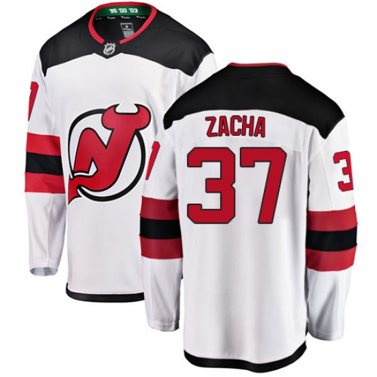 Home>NHL>New Devils Jersey>Pavel Zacha>Youth New Jersey Devils #37 Pavel Zacha Fanatics Branded White Away Breakaway NHL Jersey