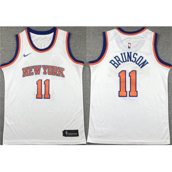 Men's New Yok Knicks #11 Jalen Brunson White With NO.6 Stitched Basketball Jersey