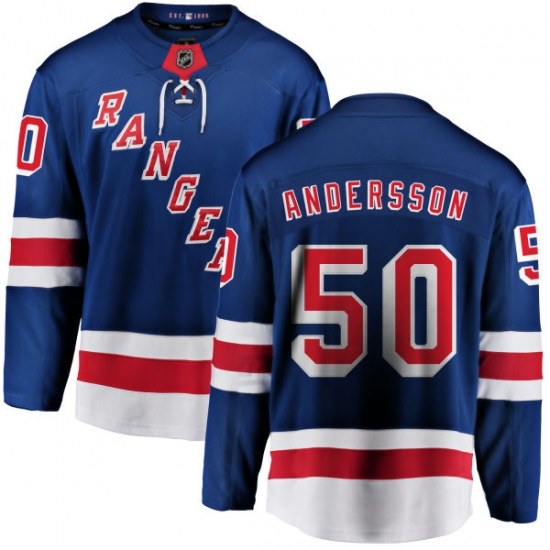 Home>NHL>New York Rangers>Lias Andersson>Youth New York Rangers #50 Lias Andersson Fanatics Branded Royal Blue Home Breakaway NHL Jersey