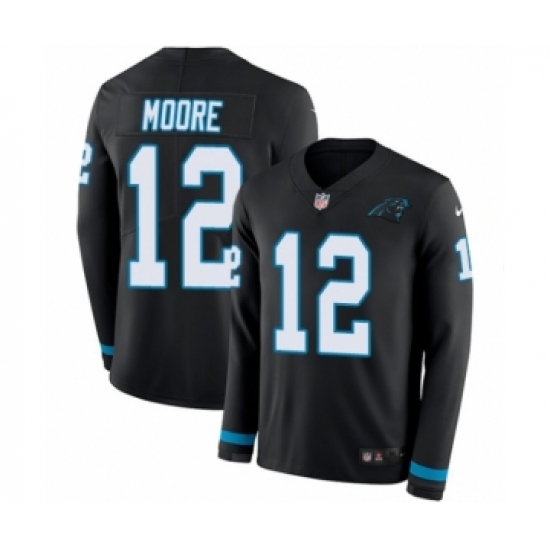 >Youth Nike Carolina Panthers #12 DJ Moore Limited Black Therma Long Sleeve NFL Jersey