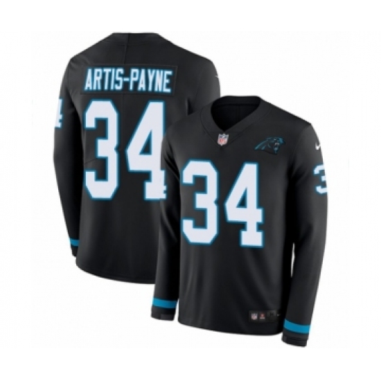 >Youth Nike Carolina Panthers #34 Cameron Artis-Payne Limited Black Therma Long Sleeve NFL Jersey