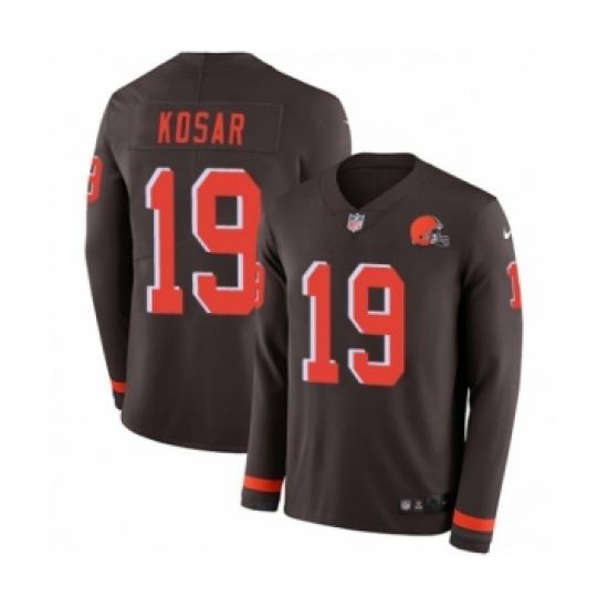 >Youth Nike Cleveland Browns #19 Bernie Kosar Limited Brown Therma Long Sleeve NFL Jersey