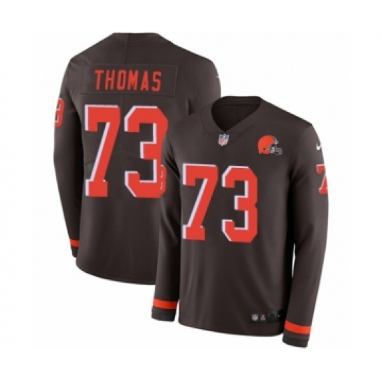 Youth Nike Cleveland Browns #73 Joe Thomas Limited Brown Therma Long Sleeve NFL Jersey