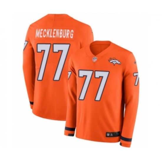 >Youth Nike Denver Broncos #77 Karl Mecklenburg Limited Orange Therma Long Sleeve NFL Jersey