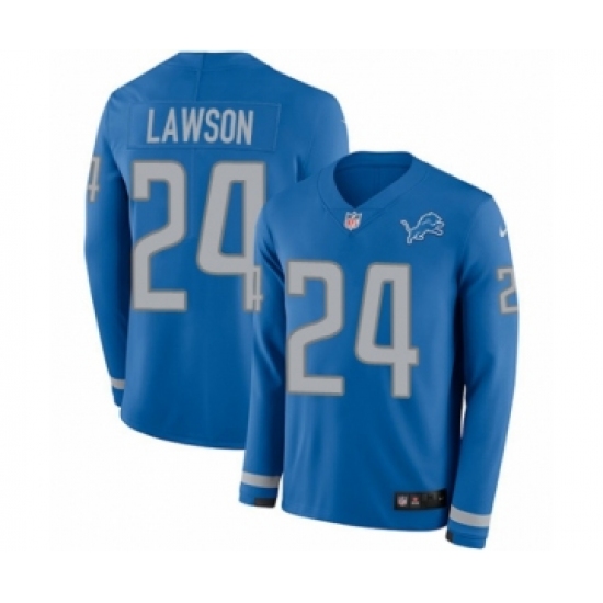 >Youth Nike Detroit Lions #24 Nevin Lawson Limited Blue Therma Long Sleeve NFL Jersey