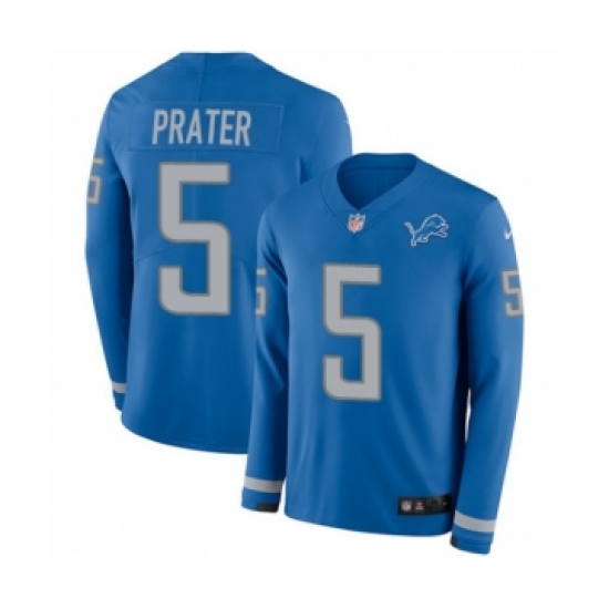 Youth Nike Detroit Lions #5 Matt Prater Limited Blue Therma Long Sleeve NFL Jersey