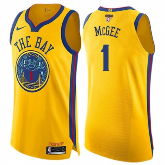 >Youth Nike Golden State Warriors #1 JaVale McGee Swingman Gold 2018 NBA Finals Bound NBA Jersey - City Edition