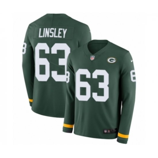 Youth Nike Green Bay Packers #63 Corey Linsley Limited Green Therma Long Sleeve NFL Jersey