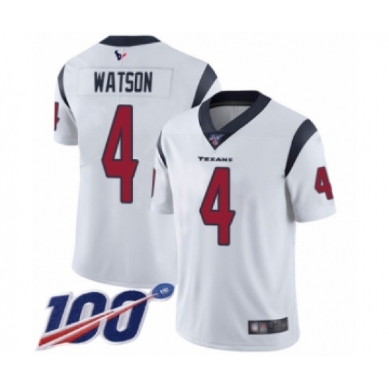>Youth Nike Houston Texans #4 Deshaun Watson White Vapor Untouchable Limited Player 100th Season NFL Jersey