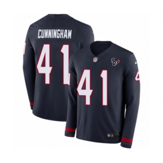 >Youth Nike Houston Texans #41 Zach Cunningham Limited Navy Blue Therma Long Sleeve NFL Jersey