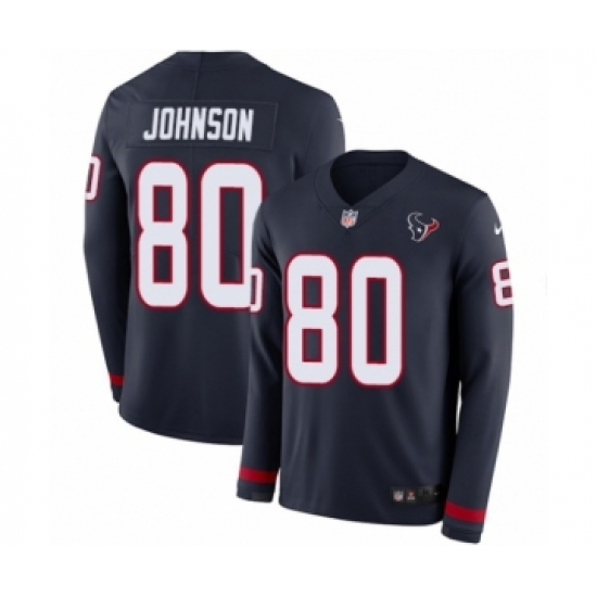 Youth Nike Houston Texans #80 Andre Johnson Limited Navy Blue Therma Long Sleeve NFL Jersey
