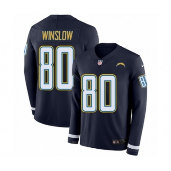 Youth Nike Los Angeles Chargers #80 Kellen Winslow Limited Navy Blue Therma Long Sleeve NFL Jersey