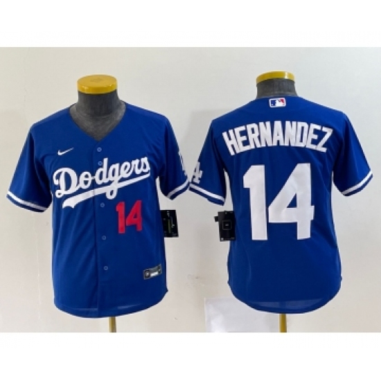Youth Nike Los Angeles Dodgers #14 Enrique Hernandez Number Blue Stitched Cool Base Jersey