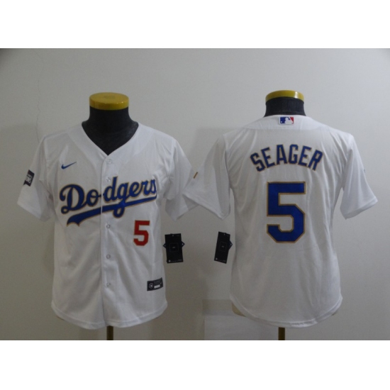 Youth Nike Los Angeles Dodgers #5 Corey Seager White Series Champions Authentic Jersey