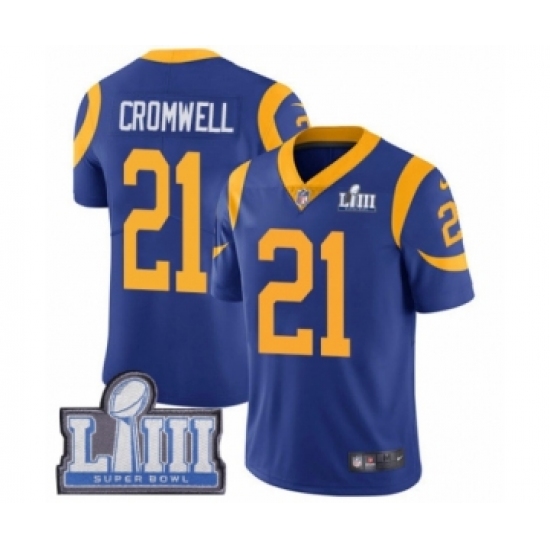 >Youth Nike Los Angeles Rams #21 Nolan Cromwell Royal Blue Alternate Vapor Untouchable Limited Player Super Bowl LIII Bound NFL Jersey