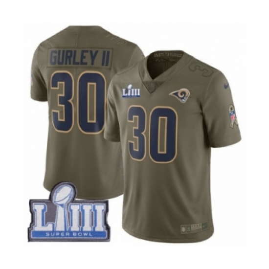 >Youth Nike Los Angeles Rams #30 Todd Gurley Limited Olive 2017 Salute to Service Super Bowl LIII Bound NFL Jersey