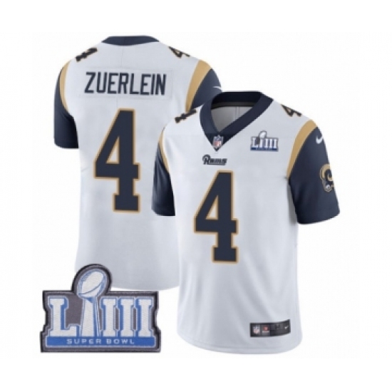 >Youth Nike Los Angeles Rams #4 Greg Zuerlein White Vapor Untouchable Limited Player Super Bowl LIII Bound NFL Jersey