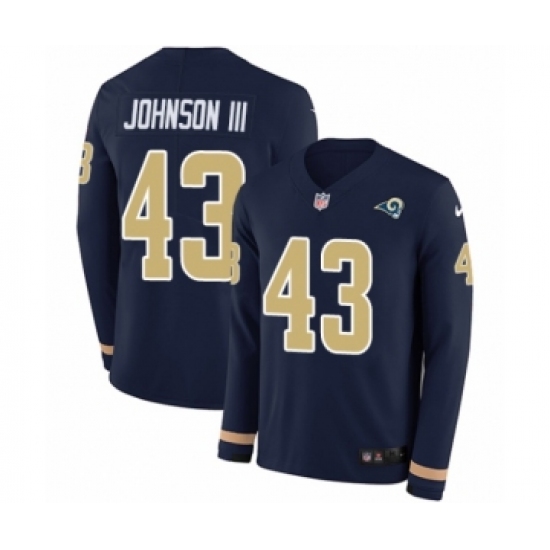 >Youth Nike Los Angeles Rams #43 John Johnson Limited Navy Blue Therma Long Sleeve NFL Jersey