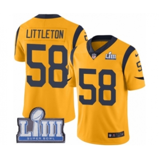 >Youth Nike Los Angeles Rams #58 Cory Littleton Limited Gold Rush Vapor Untouchable Super Bowl LIII Bound NFL Jersey
