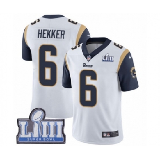 Women's Nike Los Angeles Rams #6 Johnny Hekker White Vapor Untouchable Limited Player Super Bowl LIII Bound NFL Jersey